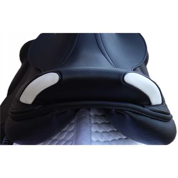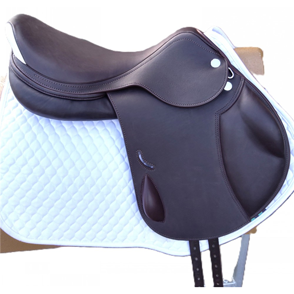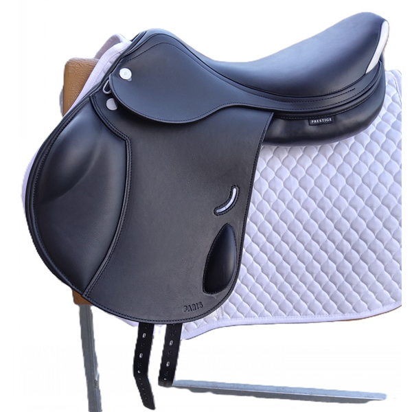 A beautifuuly crafted simple and elegant monoflap jumping saddle: part of the Prestige Paris collection.The seat, built on a standard tree, is medium deep.